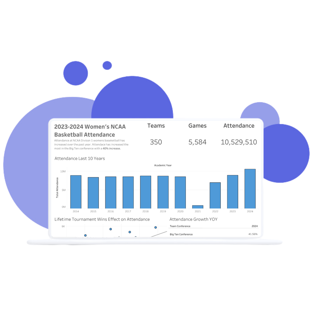 Attendance in Women’s College Basketball uses attendance data from women's college basketball games to teach core Tableau features and foundational data analytics skills.