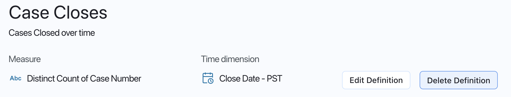 Clean up your data more easily and get to your insights faster by deleting metric definitions directly from the All Metrics page with the new 'Delete Definition' button.