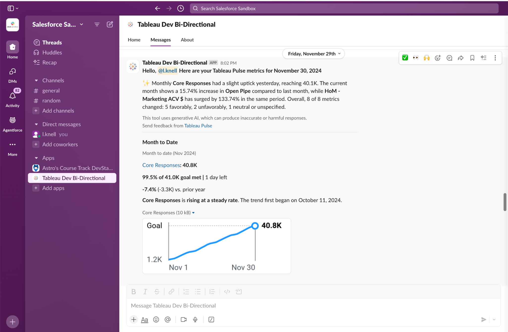 Make informed decisions quickly and effortlessly in Teams, with the power of Tableau Pulse. This integration delivers AI-powered, personalized, and contextual insights directly into your workflow, boosting productivity, efficiency, and data utilization.