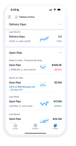 Easily access and compare key metrics on the go with the revamped Pulse homepage on mobile. You can now see at least three metrics at a glance and instantly identify trends for quicker, easier decision-making.