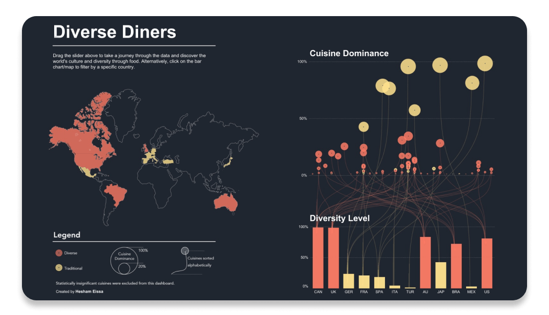 Visualizations on Tableau Public can be downloaded or explored in a browser. Quickly see how it was created, and make a version of your own. Start now by creating a free Tableau Public profile.
